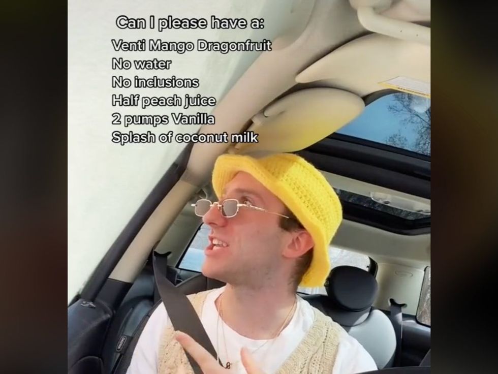 In the clip, TikTok user @salvaggio_chris asks the Starbucks worker: “Can I have a venti mango dragonfruit refresher, with no water and no inclusions.