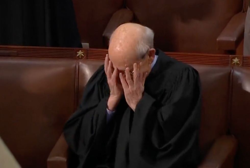 When cameras panned to Justice Breyer, the 83-year-old humbly accepted the applause and hid his blushing face in his hands. The moment was so adorable people on social media could not help but comment on it.