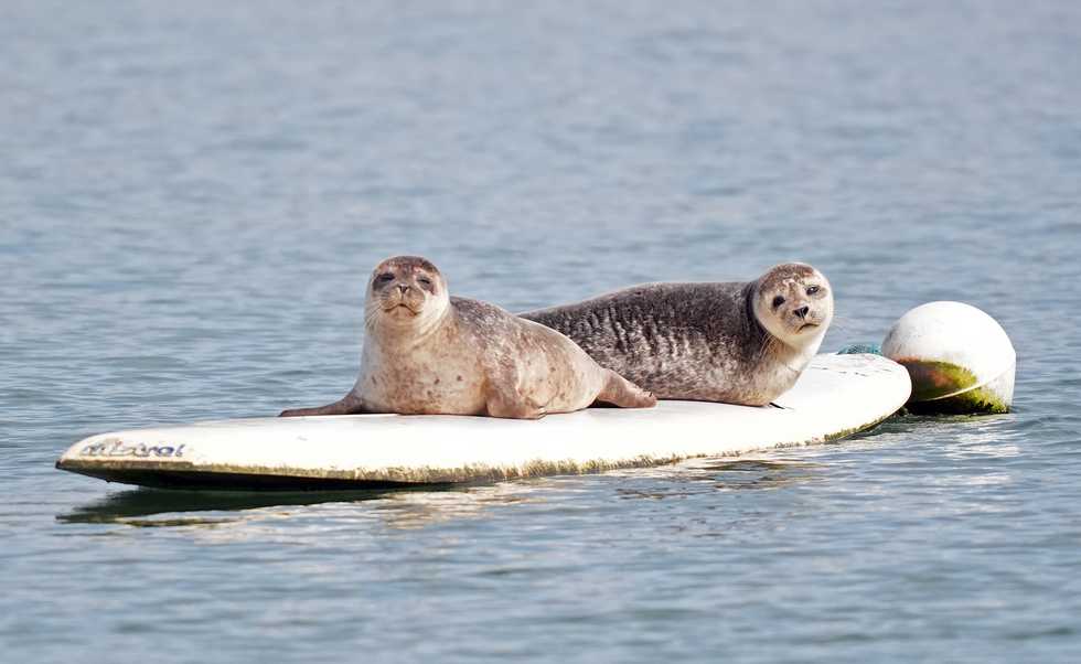 He said a local resident placed the surfboard in the river around 15 years ago and in stormy weather the surfboard flips and goes barnacle side up, meaning the seals will not attempt to board.