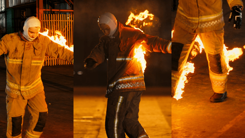 He set my arm on fire first because that was the easiest, but it was by far the most terrifying because I could see it. They wanted me to flail about a bit and look horrified for the camera, but there was no acting involved. That was horrifying. But, it looked good and the production company, After Party Studios, make it look so professional even though it’s me dressed as a firefighter looking ridiculous.
