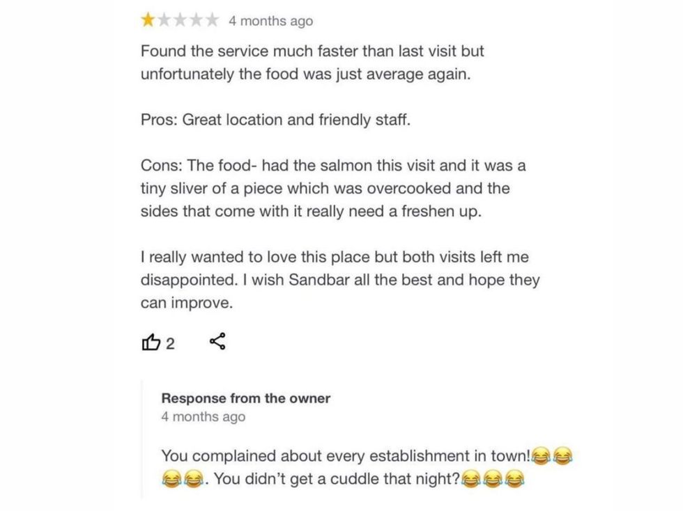 Disgruntled customers flock to leave poor reviews for restaurants across a range of different sites, but these don’t always go down well with the accused.
