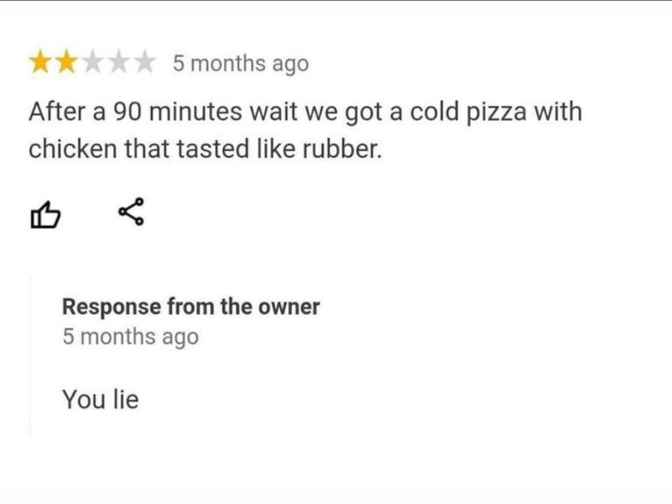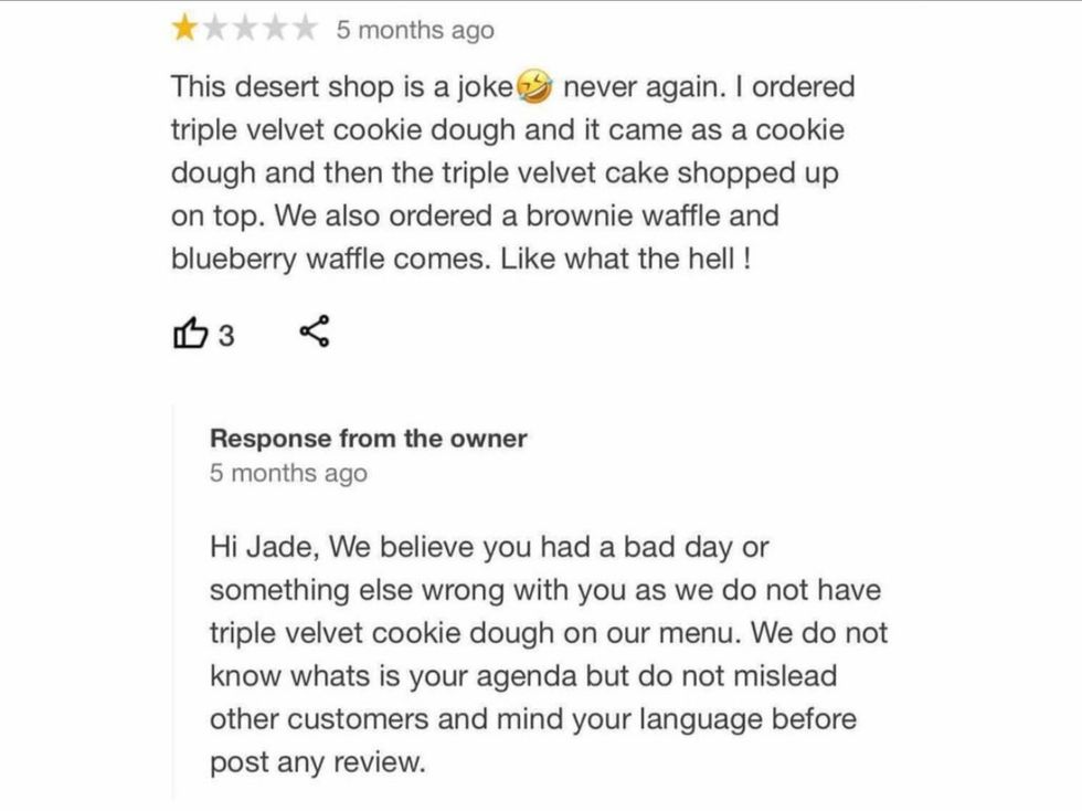 “If you’re writing a review just be honest about the situation,” she said. "If we messed up, we’ll reply seriously. If not, expect some banter.”