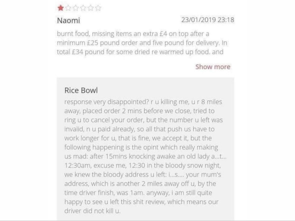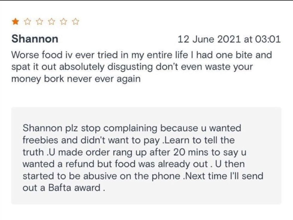 Luckily for anyone wanting to see some of the more fiery exchanges between customer and restauranteur, there exists an Instagram account called ‘Takeaway Trauma’.