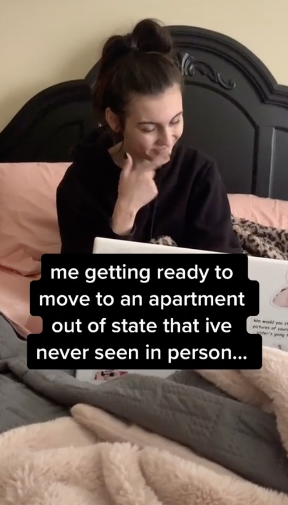 In the first video of her journey to Arkansas, which has more than 3.4 million views, you see Kahout sitting in her bed with a laptop in hand, looking gleeful with the caption “me getting ready to move into an apartment out of state that I’ve never seen in person.”