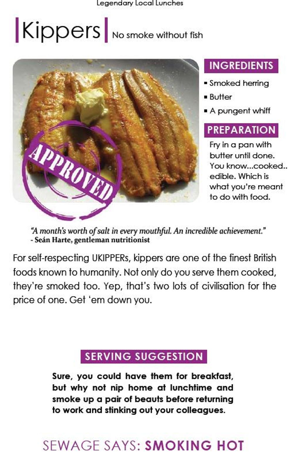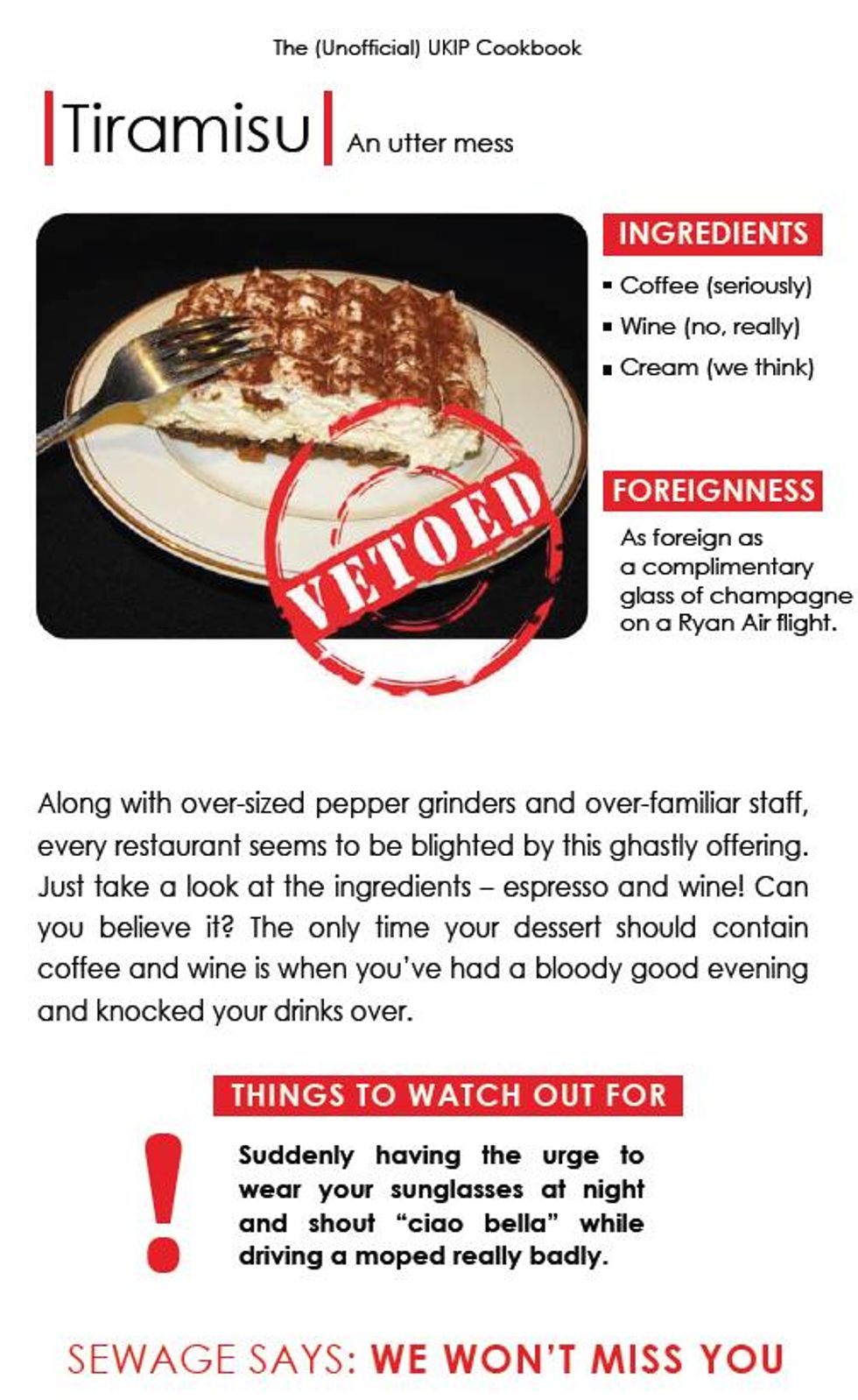 Their latest effort is a Ukip cookbook, written from the perspective of Nigel Sewage ("you can guess how he likes his name to be pronounced"), a Kent-based little Englander confused about the nation's increasingly exotic cuisine. It's not actually a cookbook, but that somehow makes it more fun.