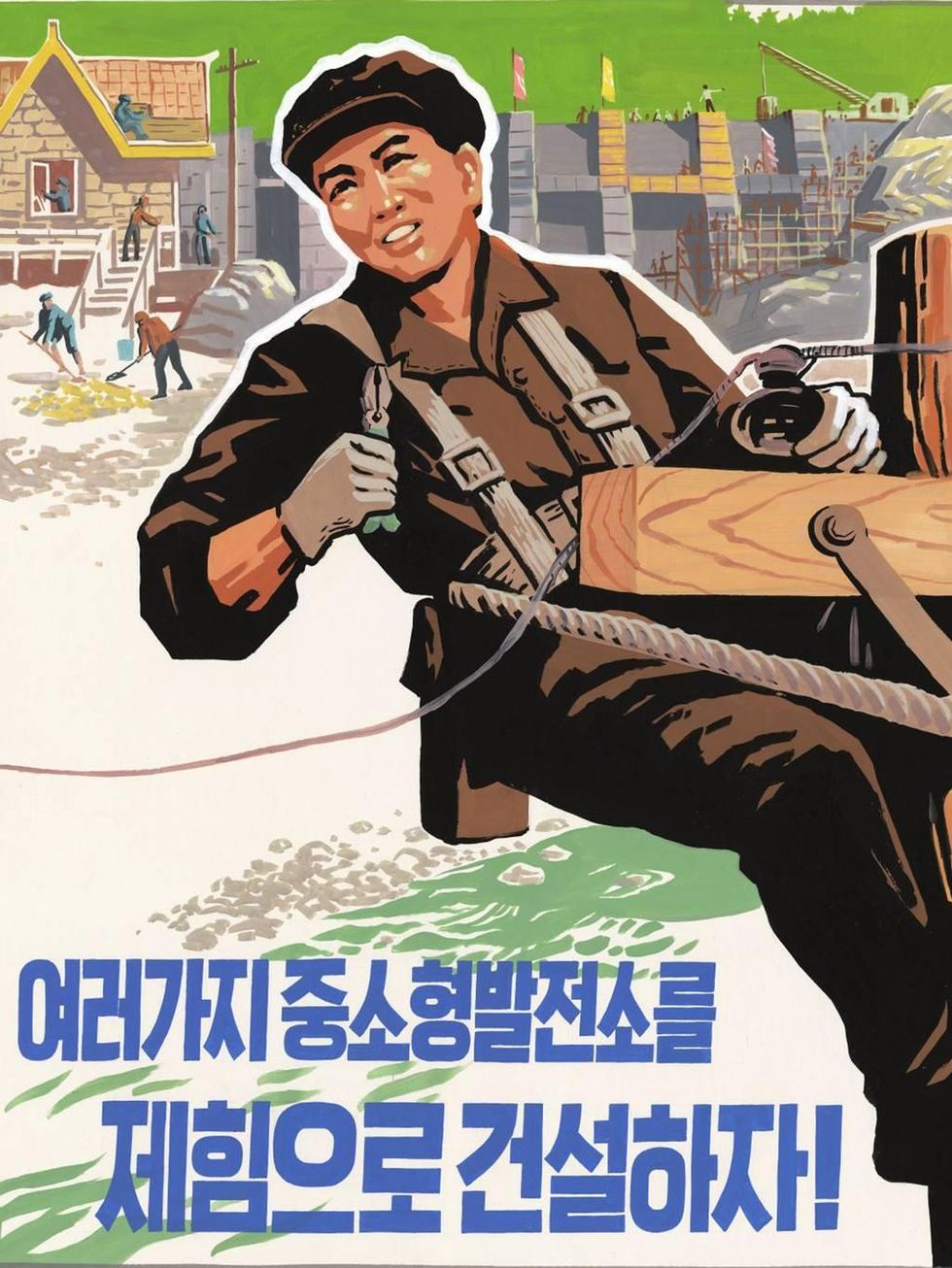 Slogan: ‘Three revolutions, let’s advance the march of grand construction with Chollima [mythical winged horse] speed’, which references building new railways