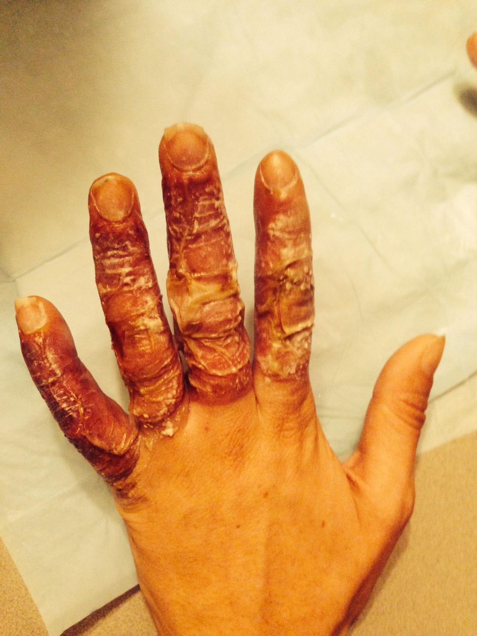 This is what Quirk's hands looked like after Dr Freezin had been at them with a scalpel: