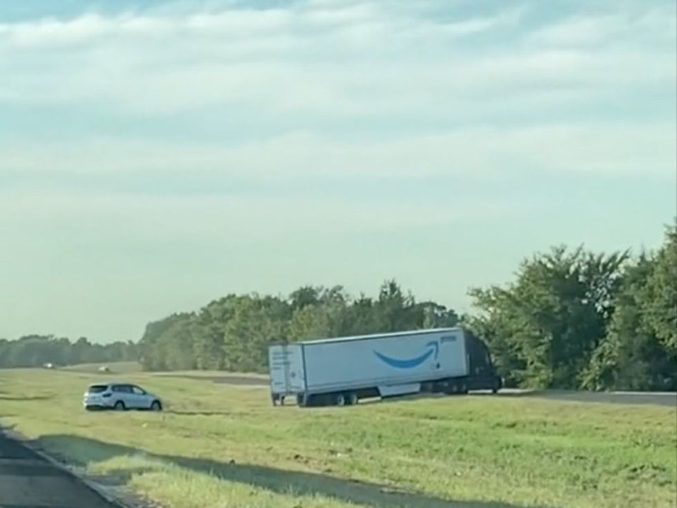 Posted on August 14, the TikTok shows bumper-to-bumper standstill traffic on the I-45 in Texas. While the rest of the road appeaedr to comply with conventional driving methods, one particular Amazon driver opted for an alternative route and drove across a stretch of grass, away from the traffic. The truck paved the way for another vehicle to follow.