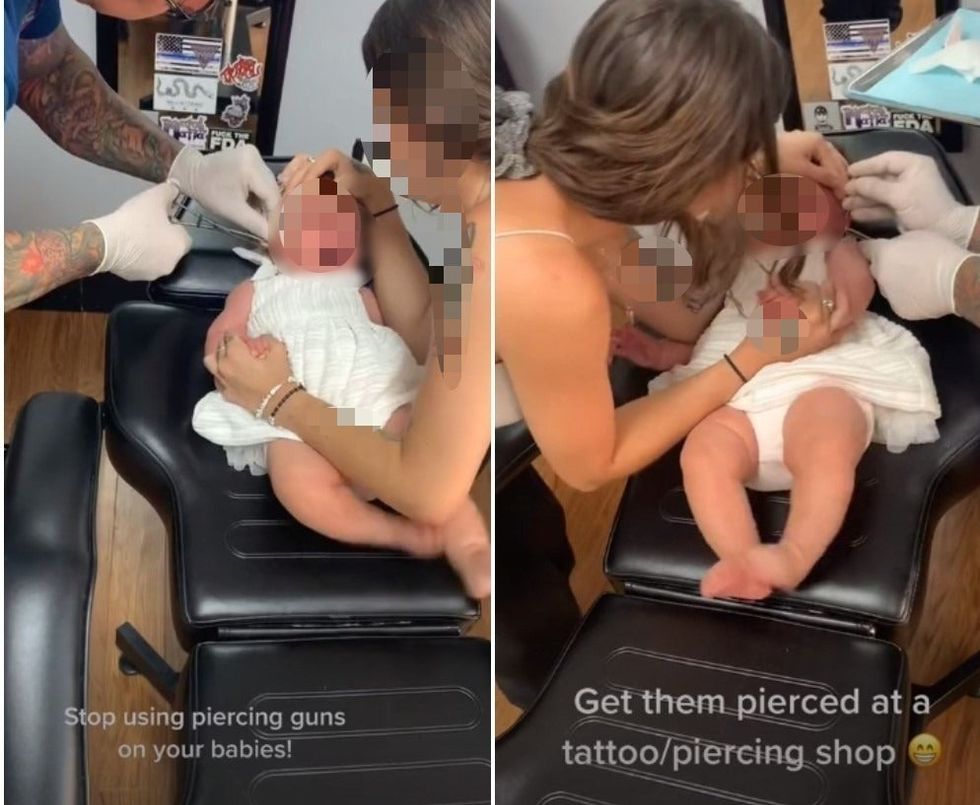 A mother has posted a video showing how she got her six-month-old baby’s ear pierced, and Tiktok users are divided about it.