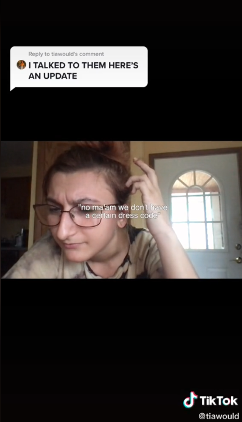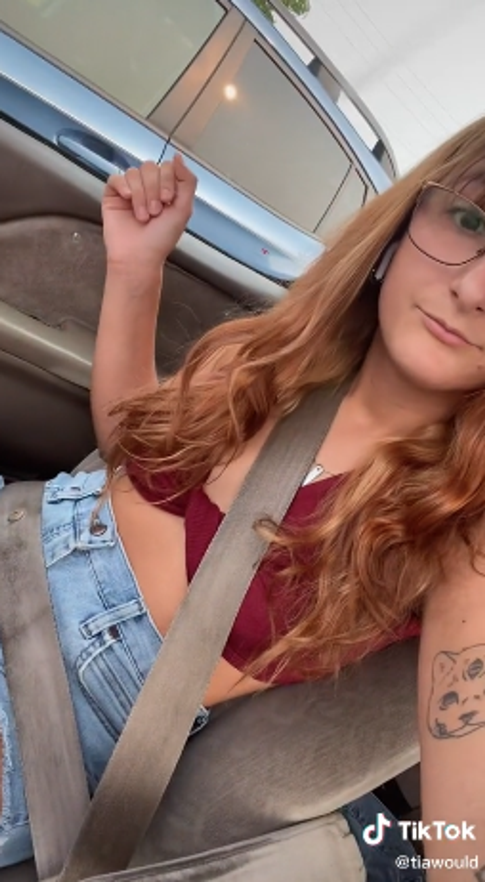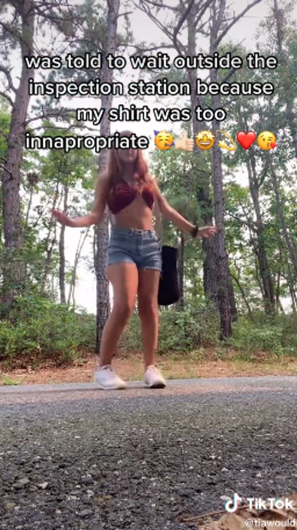 In a viral TikTok video that has been viewed more than one million times, Tia Wood says that she was “told to wait outside the inspection station because my shirt was too inappropriate.”