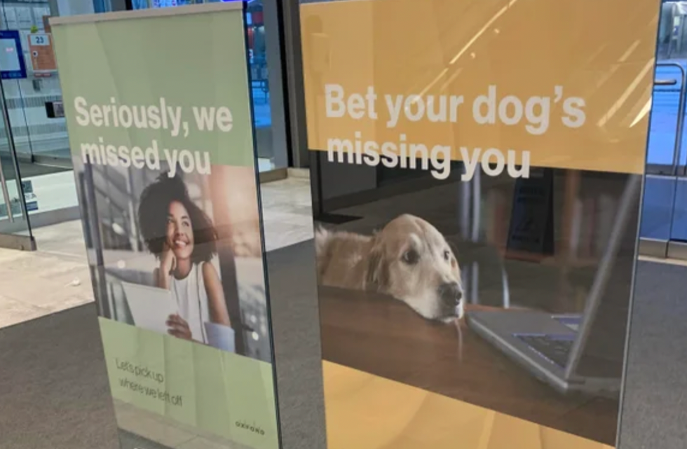 Somehow, one office thought it'd be a good idea to make light of the fact that dogs are now at home, alone, while their owners are back in the office and made a totally tone-deaf sign to rub in in employees' faces.