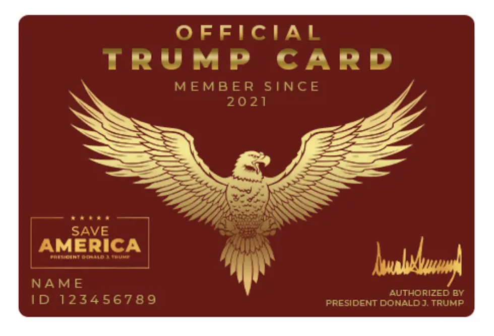 In an email sent on September 2, Trump’s PAC said, ”the card you select will be carried by Patriots all around the Country,” as reported by Business Insider. “They will be a sign of your dedicated support to our movement to SAVE AMERICA, and I’m putting my full trust in you. “ In a second email, they added: ”We’re about to launch our Official Trump Cards, which will be reserved for President Trump’s STRONGEST supporters.”