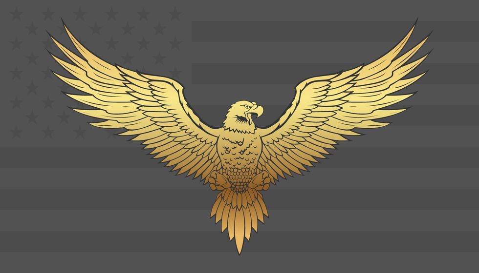 Titled “Golden Eagle with wings spread,” the file is available for free download by signing up for a Shutterstock trial. It’s one of the most popular “eagle” options on the site, and the graphic designer who hosts the image is David Randall Peters. It’s also the third option to come up when you search “golden eagle illustration” on the site, so it doesn’t take a particularly deep dive to uncover its origins.