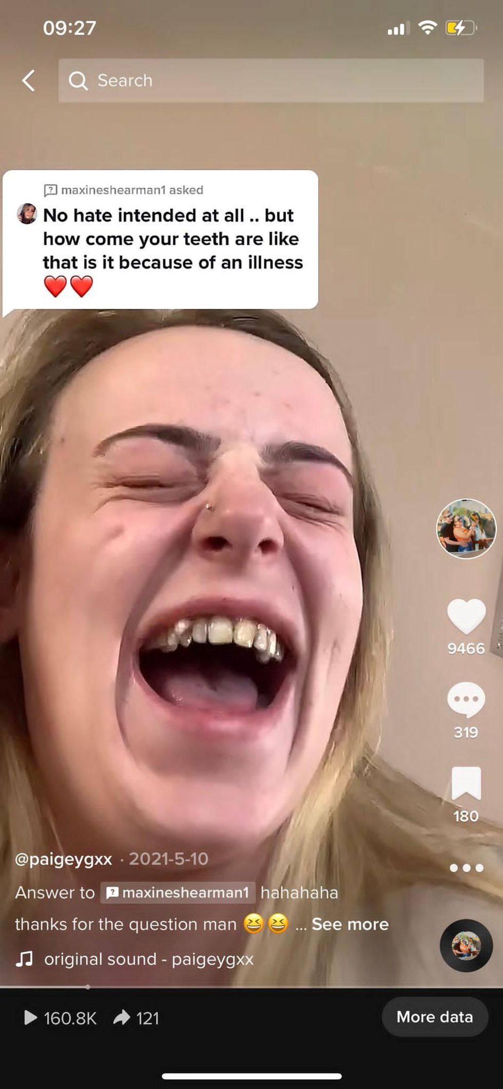 Over the years she went to various dentists who couldn’t find a cause for her stained teeth, and the trolling followed her onto social media when she set up a TikTok page.