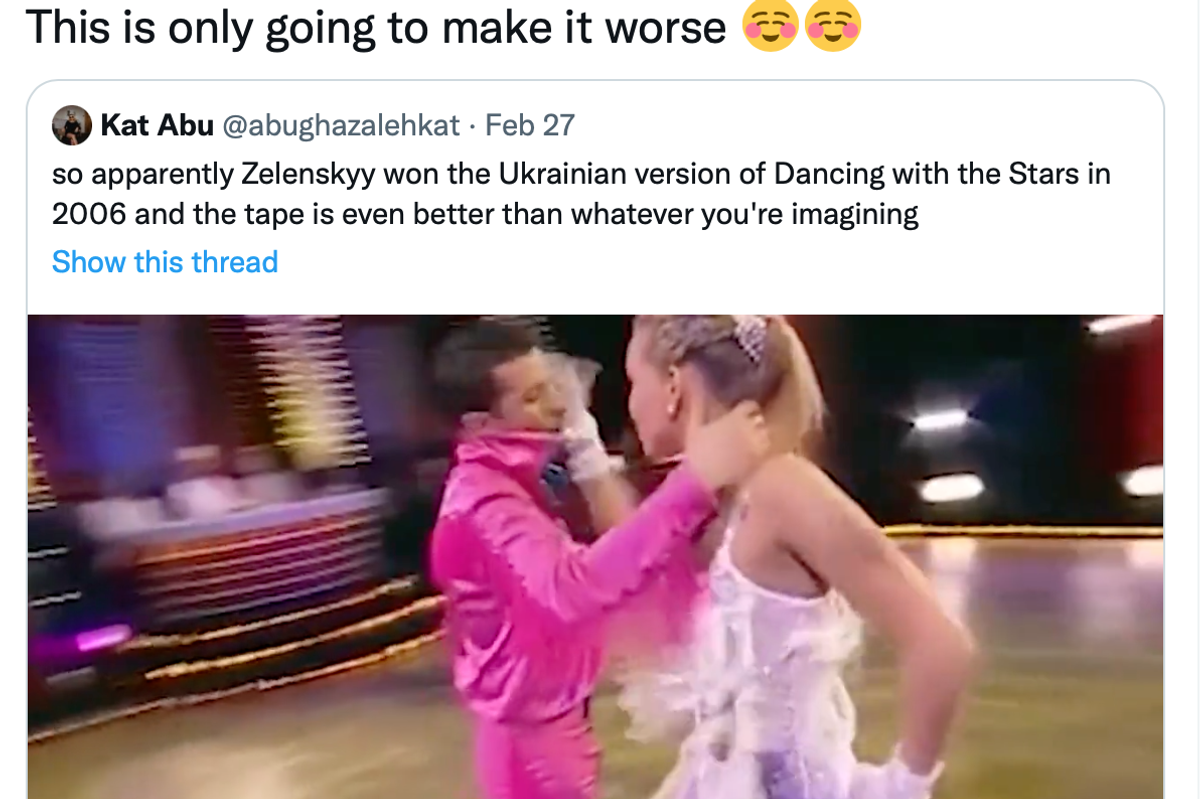 Another said: "Acquaintance told husband she has a crush on Zelensky, and he responded with, 'As do I.'"