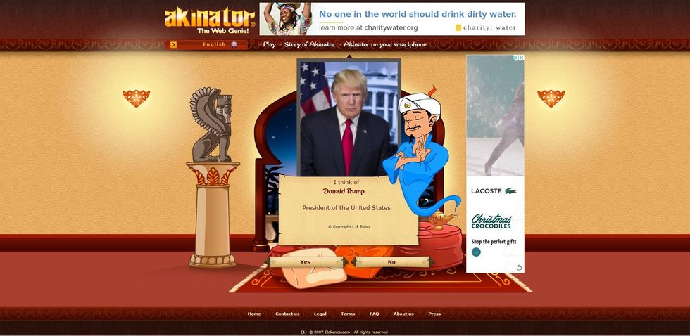 This is surprisingly fun, actually. You think of a person or character - literally, anyone throughout history or fiction or popular culture - and Akinator the web genie will ask you a series of yes or no questions before correctly guessing who you're thinking of.