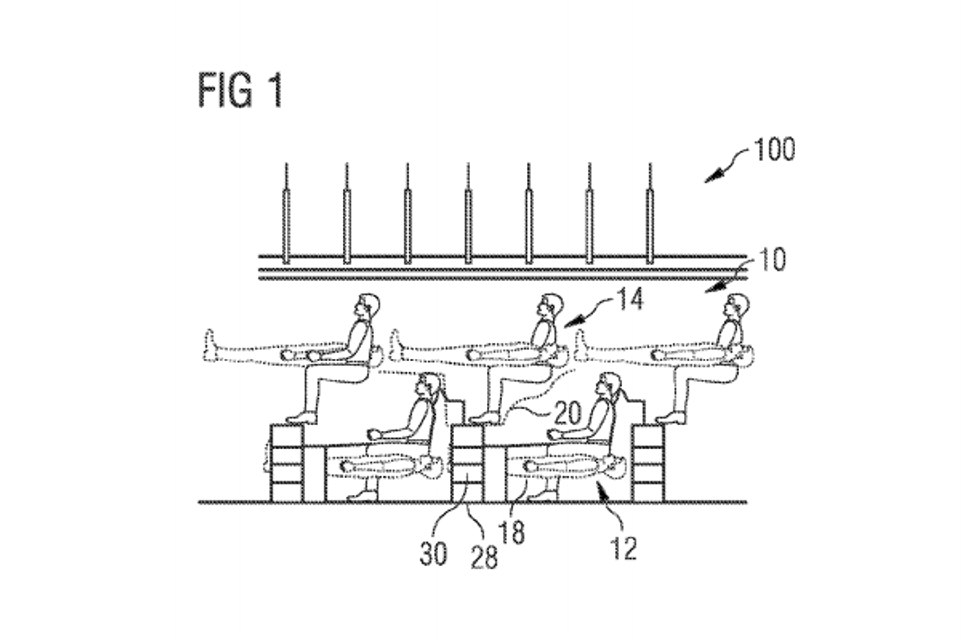 The design, filed with the US Patent and Trademark Office last week, shows seats stacked on top of each other in a mezzanine-style arrangement.