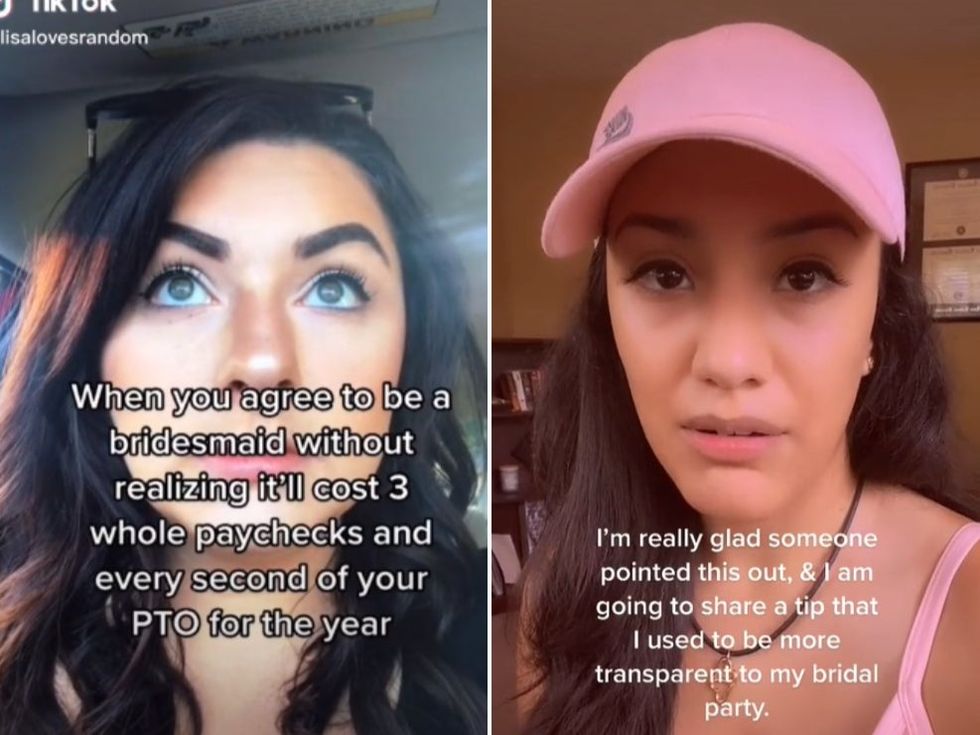 TikToker Lisa replied to a previous video where a woman writes, “When you agree to be a bridesmaid without realising it’ll cost three whole paychecks and every second of your paid time off for the year.”