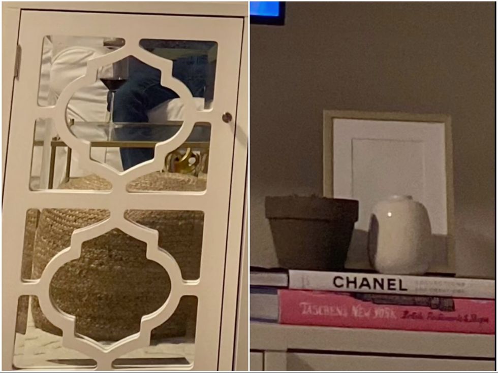 Zooming in on the picture, Megan-Marie revealed what appeared to be a woman’s knee reflected in a mirrored cabinet, as well as what she clearly deemed to be tell-tale female signs: a book about Chanel and a large bouquet of pink and white flowers.