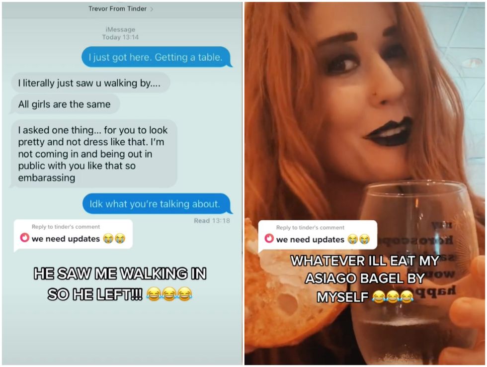 In a caption to the clip, she explained that after asking her out on a date Trevor messaged her saying: “Please look pretty and don’t show up looking like a goth witch or something. I don’t like that’.”