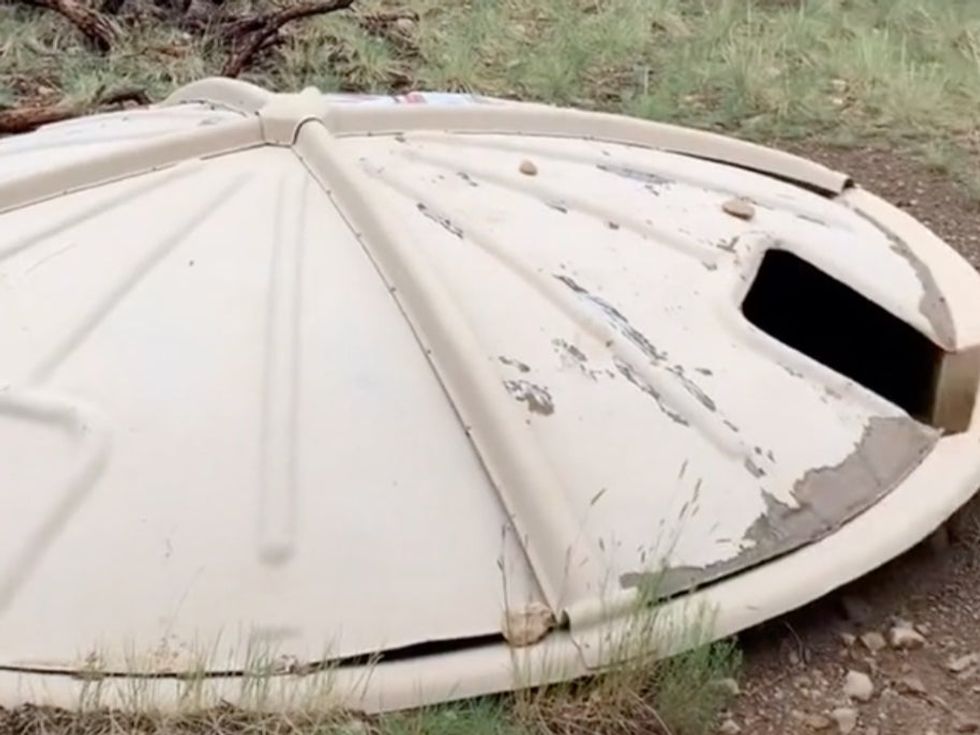 Ally (@allymurray222) opened the viral video by saying, “If anybody from conspiracy TikTok is here um, I think you’d be interested in the UFO I just found in my backyard.”