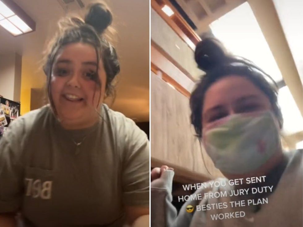 “When you get sent home from jury duty, besties the plan worked,” read the text on her video that now has more than 3.3M views.