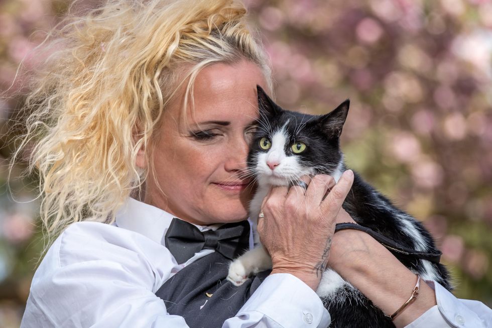 Decked out in a tuxedo, the single mum tied the knot with her moggy in a civil ceremony last Tuesday, presided over by a legally ordained pal. The five-year-old cat, who was draped in gold lamé for the special day, meowed her way through her vows as Deborah's friends watched on in a park in southeast London.