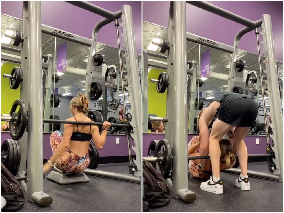 The girl, TikTok user and fitness fanatic Ashley (@fitby.ash), was doing squats with the help of some hefty weights when she realised she’d bitten off more than she could chew.