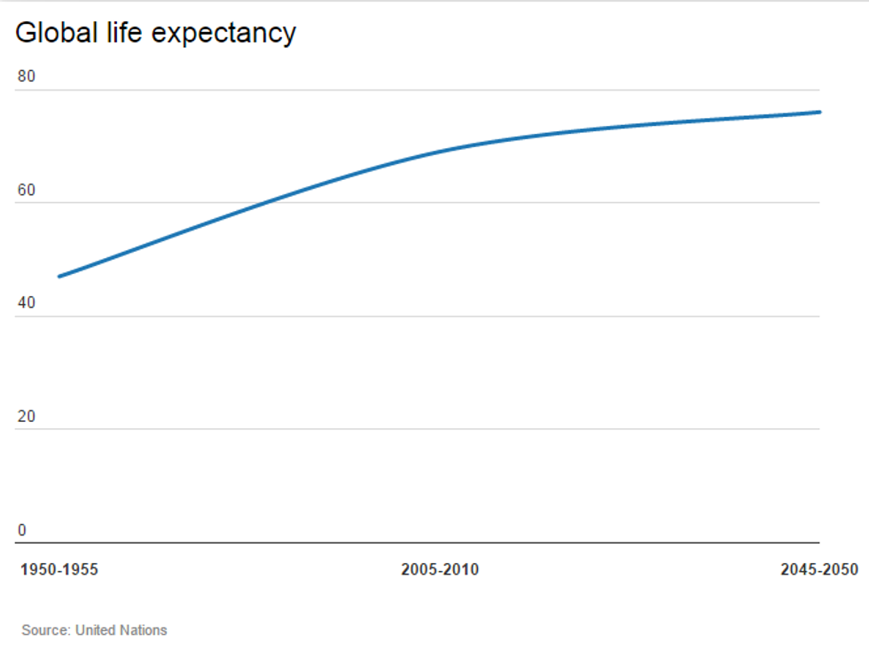 Mainly due to ageing populations and low fertility rates in countries such as Japan and China.