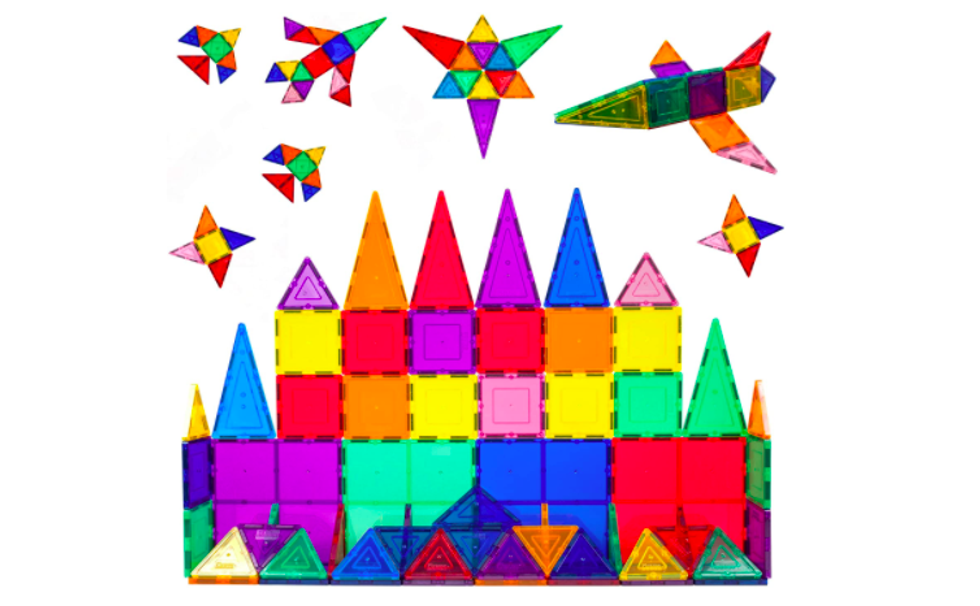 PicassoTiles 60 Piece Set 60pcs Magnet Building Tiles Clear Magnetic 3D Building Blocks Construction Playboards