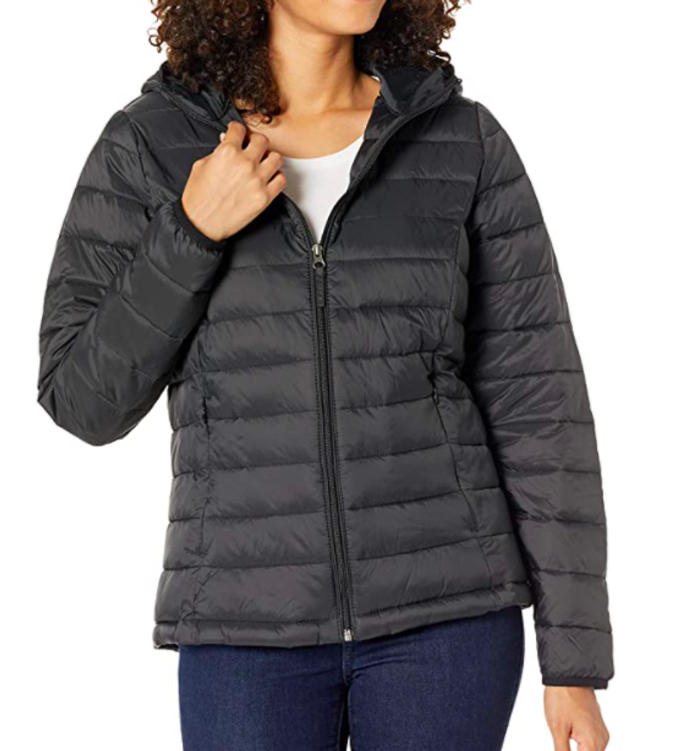 Amazon Essentials Women's Lightweight Long-Sleeve Full-Zip Water-Resistant Packable Hooded Puffer Jacket
