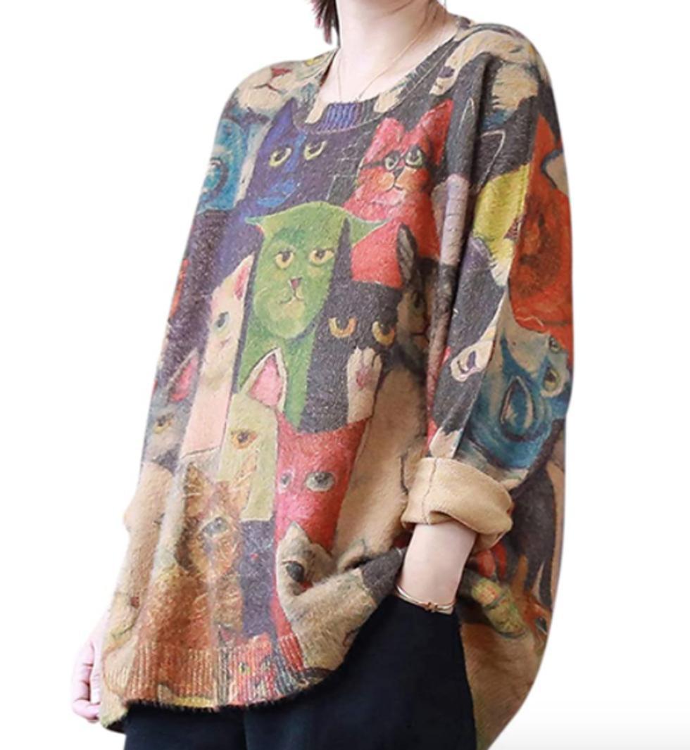 With the return of irony, indie sleaze, and all the other post-2000 trends we see coming back around, there's no better time to lean into being a cat lady (ironic or not) with this attention-grabbing sweater.