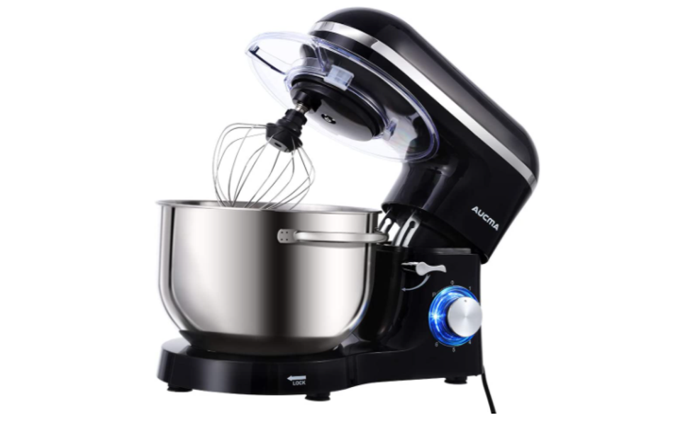 The Aucma stand mixer has a 6.5 quart capacity, attachments like a dough hook, wire whip, and beater, and six optimized speeds with a pulse option. It makes a fantastic gift for someone who likes to bake, and it looks sleek and stylish on any countertop.