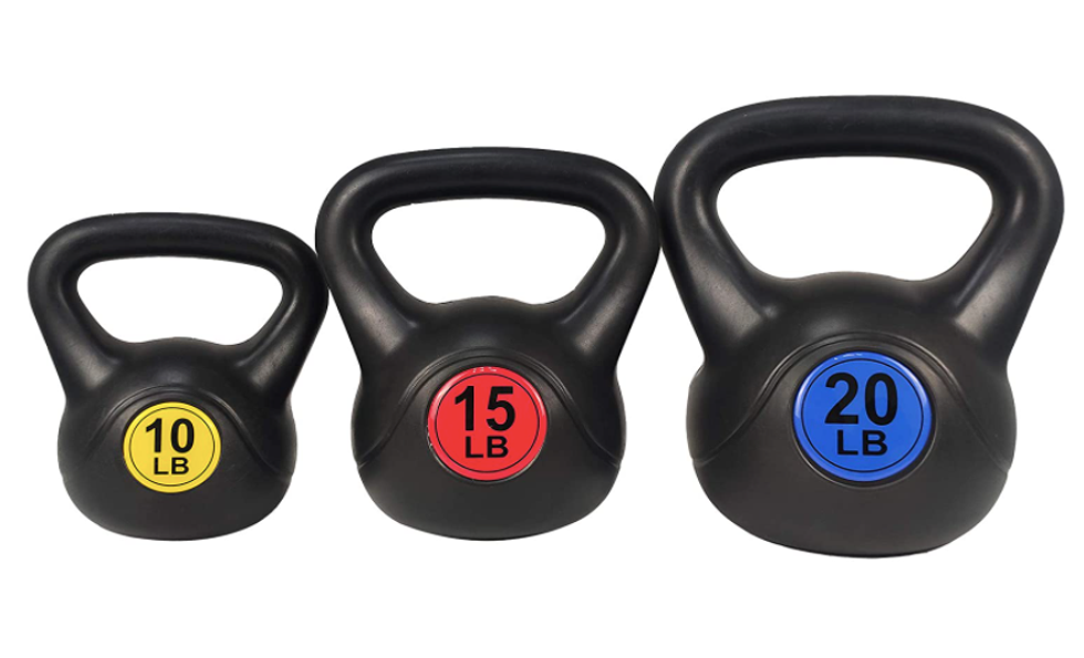 Wide Grip Kettlebell Exercise Fitness Weight Set, Includes 10 lbs, 15 lbs, 20 lbs