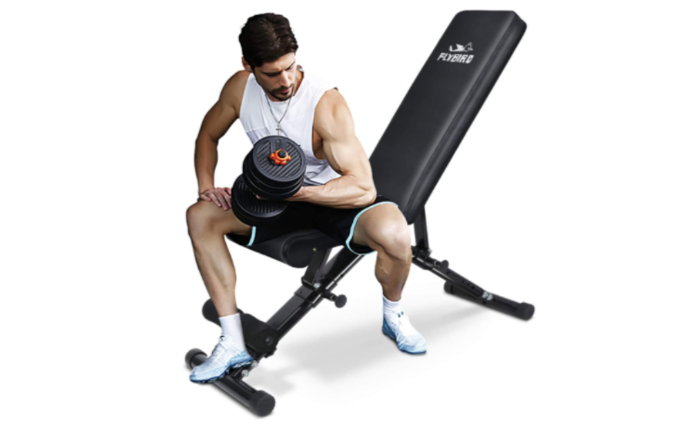Tone up at home on the cheap when you order this Lightning Deal weight bench by Flybird that lets you customize your workout and get the most bang for your buck. It folds easily to fit in compact spaces and can be configured into seven back and three seated positions. It also has a 700-pound weight capacity, making it one of the strongest benches you can find.