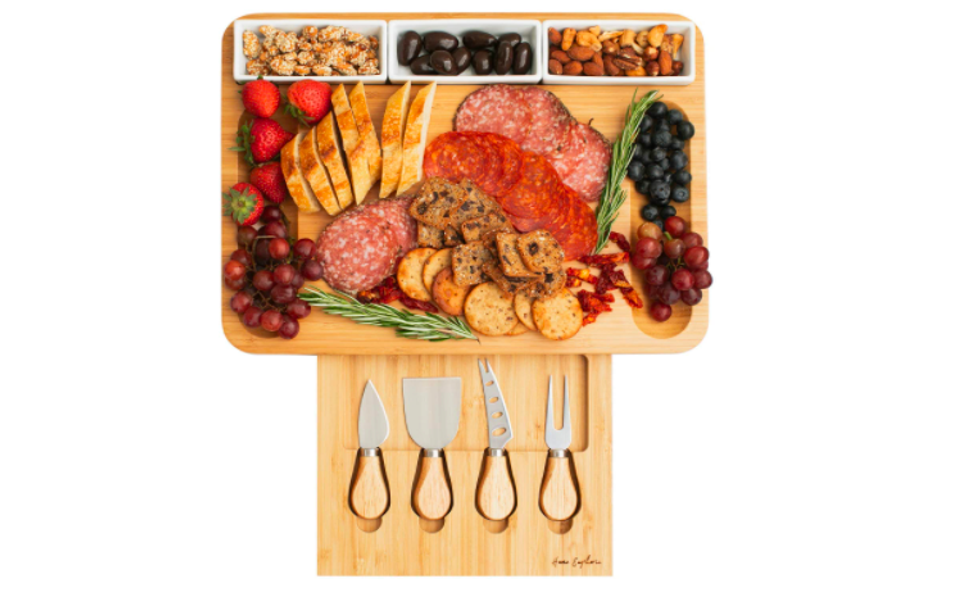 If you like the book we suggested above, make sure to throw in a board like this one to really treat the biggest charcuterie fan in your friend circle. It has all the tools needed to serve a scrumptious spread at any party!