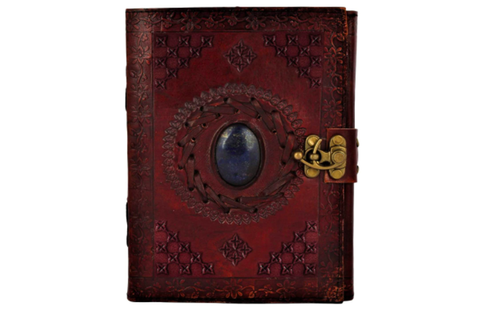 An attractive leather-bound journal is great for all sorts of reasons: inspiring one to write, jotting down travel or work notes, scribbling the ancient spells of your family down to create a sacred grimoire...the list goes on forever. This one is made particularly beautiful by its intricate leather detailing and lapis lazuli stone, as well as eco-friendly cotton-made paper inside.