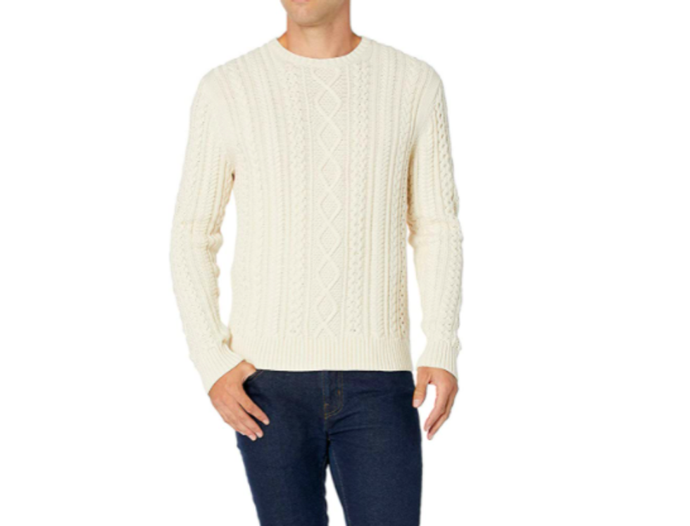 Amazon Essentials Men's Long-Sleeve 100% Cotton Fisherman Cable Crewneck Sweater