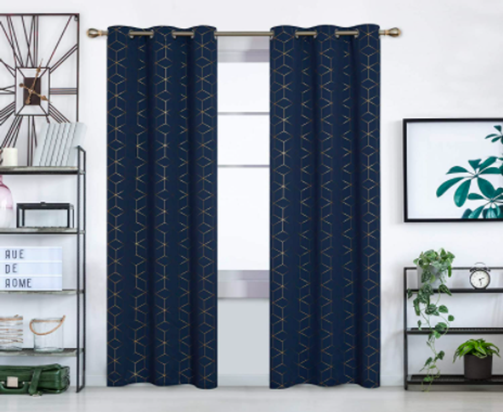 These navy and gold foil curtains are contemporary, stylish, and right now, marked down to under $30 for the pair (down from the usual $42.99). They’re made of 100% polyester and built to act as thermal insulators as well as light blockers to balance your inside temperature year-round.