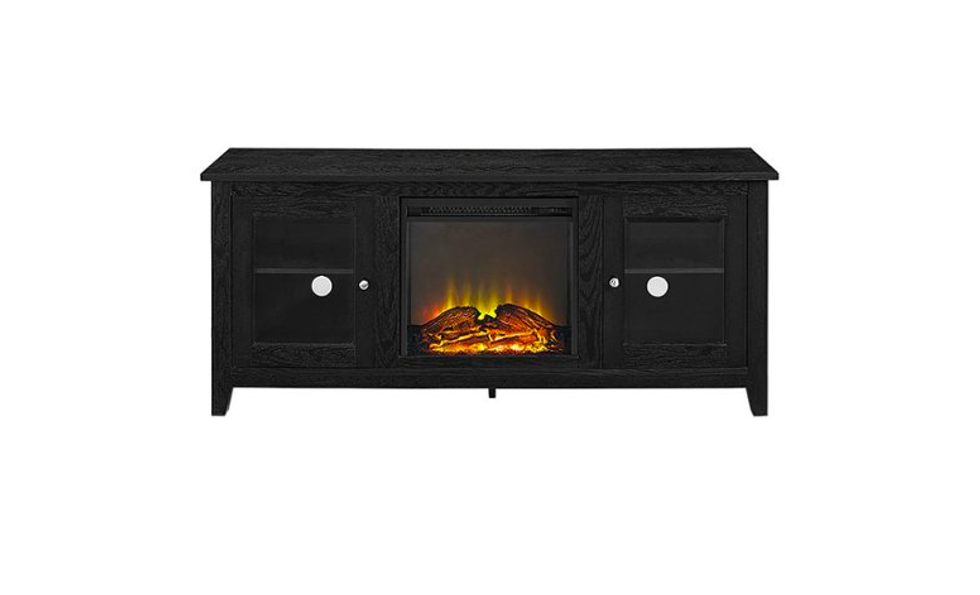 Walker Edison - Traditional Two Glass Door Fireplace TV Stand for Most TVs up to 65" - Black