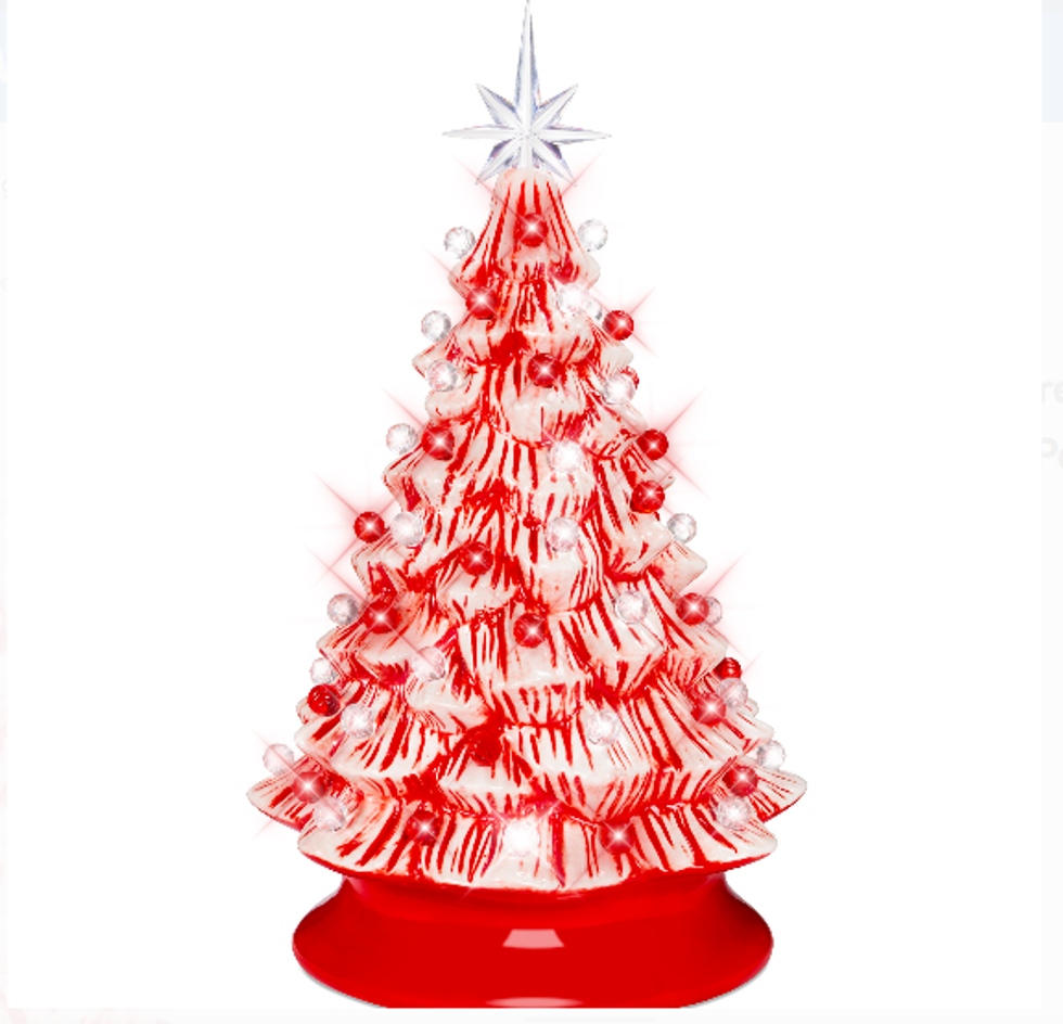 If there is a “most trendy item of Christmas 2020,” it’s the vintage inspired ceramic light-up tree. While the green, white, and cream-colored variations are lovely and play into a sense of holiday nostalgia, this peppermint striped version is positively wonderful and freshens up the familiar object.
