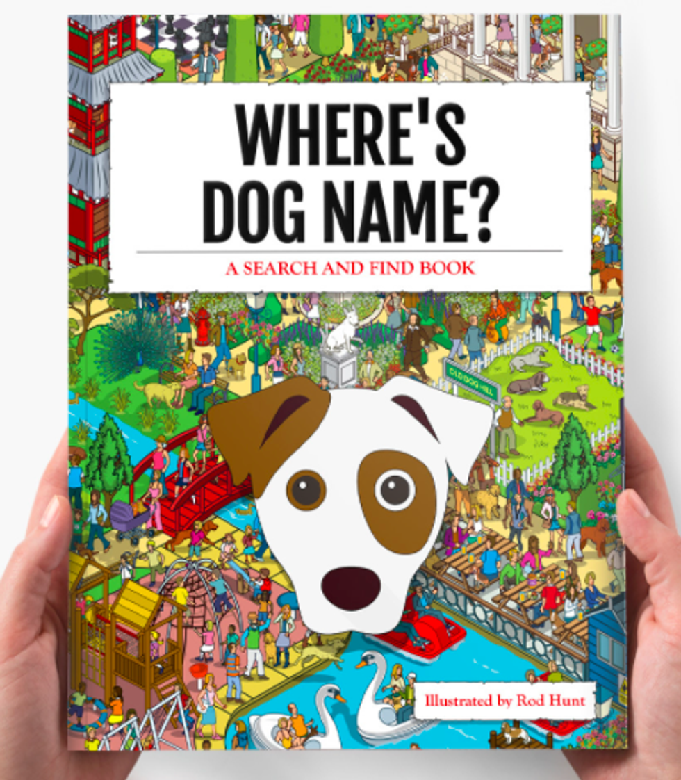 Combine the fun of Where’s Waldo? (or Wally, if you’re not American) and a cartoon pup that looks like your recipient’s own with this custom book that asks:
