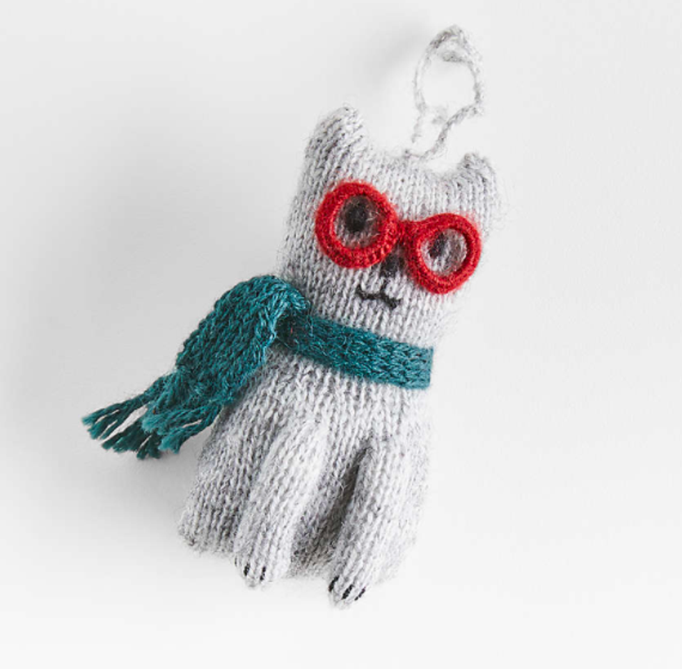 Cat lovers are pretty easy to please, but this ornament is cute enough for even the pickiest among them. Anyone opening this cutie will delight in its yarn glasses and scarf, as well as that teeny smirk so familiar to any feline owner.