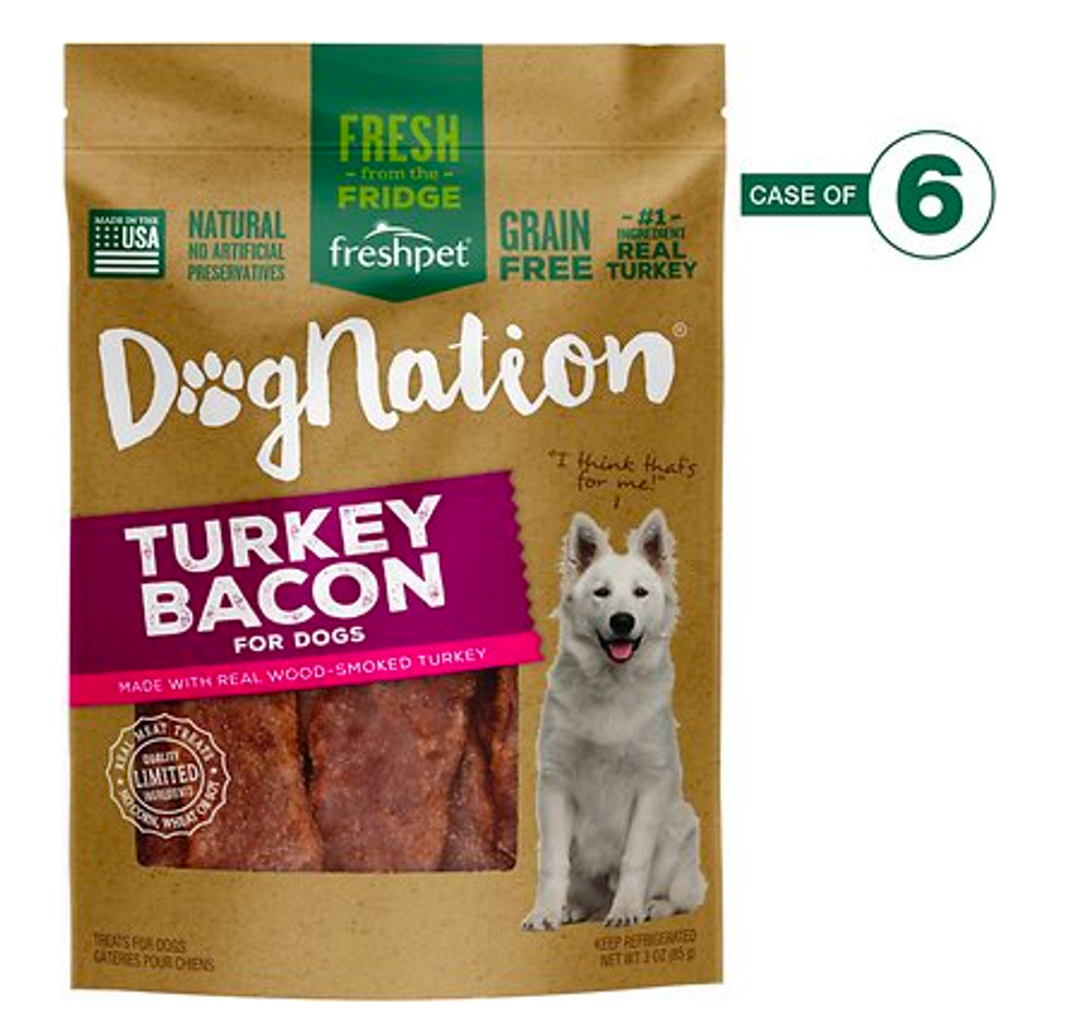 Freshpet Dognation Turkey Bacon Grain-Free Fresh Dog Treats, 3-oz bag, case of 6