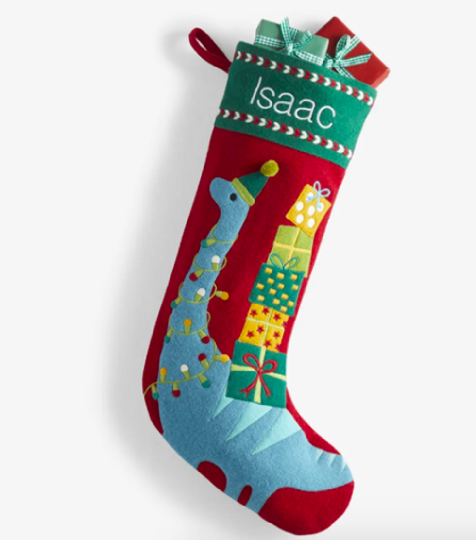 With a soft cotton backing and precious needlepoint front featuring a gingerbread man and his house, this is one of the cutest stockings you’re going to find. There are plenty other scenes to choose from as well, like sledding penguins or a Christmas lighthouse, but the best part is you can have it monogrammed (up to 10 characters) for an additional $8.