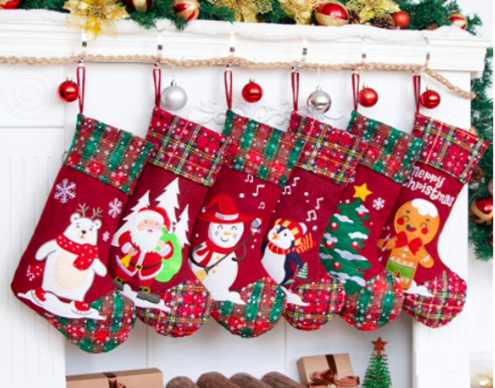 This six-pack of stockings featuring traditional Christmas motifs (Santa, a polar bear, a snowman, a tree) that will look fantastic grouped together on your mantle or media console, and you can choose packs of four or five, too, should your family or space to hang be smaller.