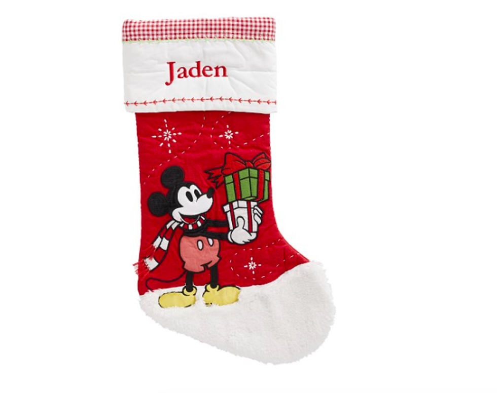 On sale for a limited time, you can buy this retro-inspired Disney stocking featuring Mickey himself holding a small stack of gifts. Personalization is available on this one for an additional $12.50.
