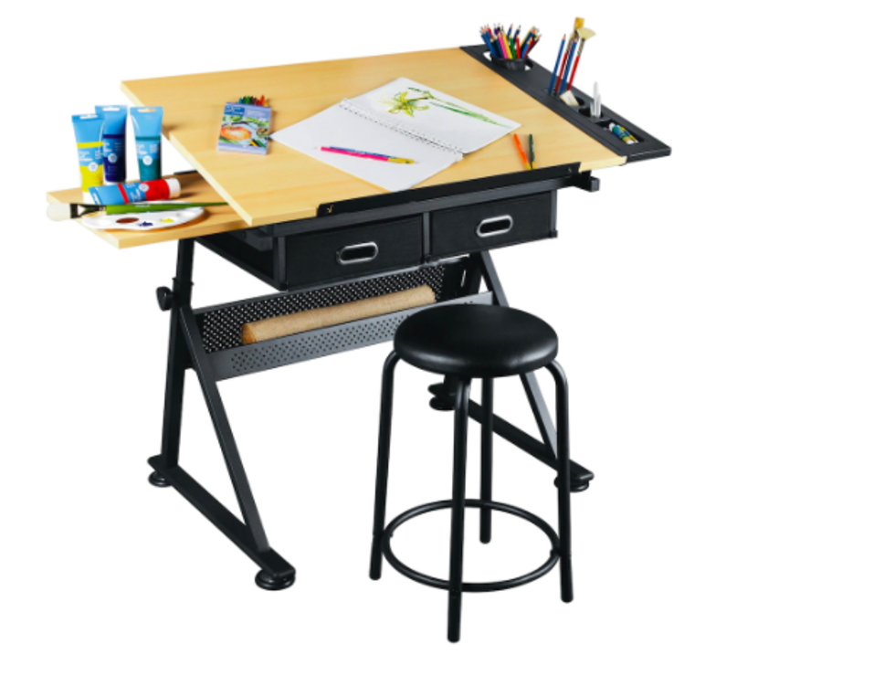 Artists young and old alike will appreciate this dedicated space that helps organize the tools and media needed to free up valuable creative brain space. You’ll get an adjustable, tilting tabletop, a padded stool, and plenty of space for storage included in this handy setup.