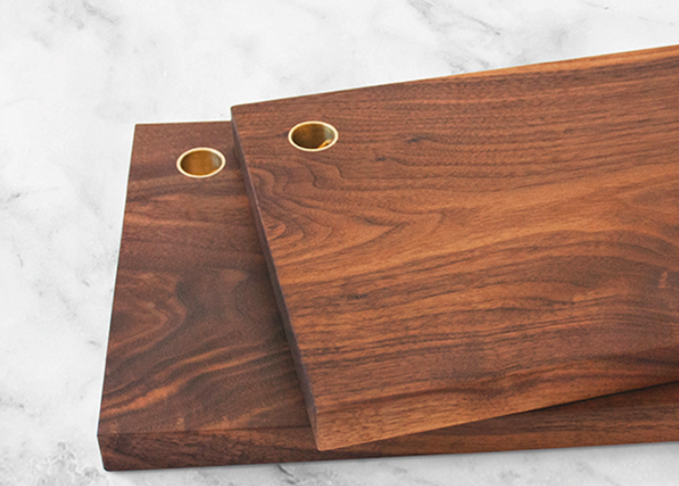 If you’re currently drooling over Asher’s ducks and othr designs but looking for something a bit more classic, you may consider a more reasonable cutting board from the designer that carries the hallmark American black walnut and solid brass construction but at a fraction of the price while still being cold enough to draw together a gorgeous look in your kitchen in an unexpected place. The boards are available in a variety of sizes that go up incrementally in price (up to $180) and are ready to serve your every chopping need.