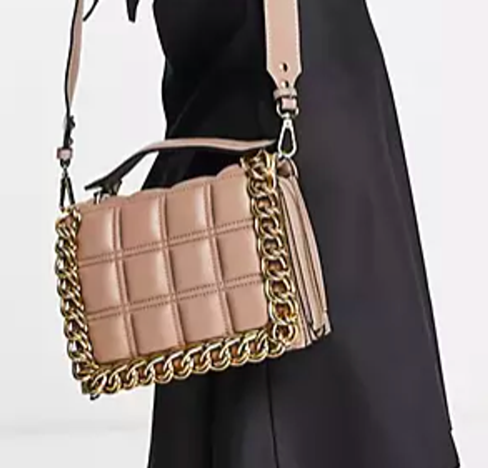 Like the look of a classic Chanel but don’t wanna pay multiple thousands of dollars to rock it? There’s no need with this inspired quilted bag that utilizes thick chains to toughen up the classically fashionable look. It’s made with matte faux leather with a top handle and strap, so you can wipe it down easily and wear it a multitude of ways.